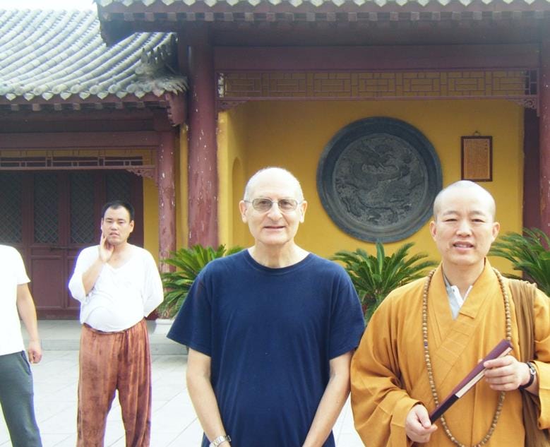 My first two Chinese friends, Xiao Jun Jie, left, and Meioguang Fashi (Fashi is Chinese for Master Teacher, literally Dharma Master)[/caption]