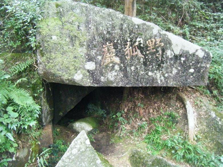 This inscription marks the site of a famous story in Chan. The story of the monk reborn as a fox. This is the actual cave where his dead fox body could be found.