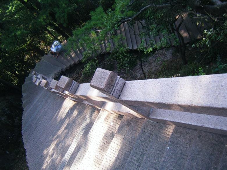 Here is a stairway on the way to the top of Jiu Hua Shan. Yan Zhen sent me to his monk brother, Yan Hui, who was my guide at Jiu Hua Shan. I also spent time with Yan Hui and discussed issues of history and modern society.
